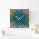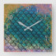 Horloge Carrée Écaille de poisson sirène glamour sarcelle violet
