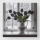 Horloge Carrée "Elégance dépoli : Tulipes noires dans un vase bla