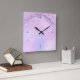 Gorgeous wall clock design with faux violet glitter marble and pastel purple texture.