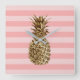 Horloge Carrée élégant joli ceinture en or ananas & bande rose