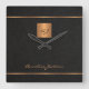 Ecran murale élégante en cuir noir de luxe avec une parties scintillant en or monogrammed carré et signature de nom personnalisée.