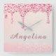 Ajoutez de l'éclat et du style à votre espace avec cette élégante horloge murale carrée pour enterrement de vie de jeune fille, à paillettes roses et effet de gouttes qui brillent. Avec des gouttes scintillantes factices de couleur rose vif qui tombent en cascade sur un fond doux et scintillant avec un effet de rayonnement lumineux, cette horloge apporte une touche audacieuse et féminine à n'importe quelle pièce. Un détail subtil de dentelle ajoute un charme gracieux, ce qui la rend parfaite pour une chambre glamour, un bureau, une résidence universitaire ou un espace de boutique. Personnalisez-la avec un prénom pour créer une pièce décorative unique ou un cadeau attentionné.