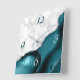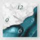 Horloge Carrée Elegant Teal Agate Silver Glitter Marble