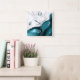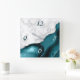 Marbre blanc élégant et agate turquoise, orné de parties scintillant en faux argent, se marient dans cette luxueuse horloge murale carré. Les numéros 3 et 6 apparaissent en gris argenté clair sur l'arrière - plan d'agate, tandis que les numéros 9 et 12 apparaissent en turquoise foncé sur le marbre blanc.