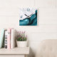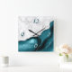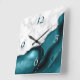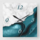 Horloge Carrée Elegant Teal Agate Silver Glitter Marble