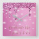 Horloge Carrée Élégante coulée de paillettes rose vif