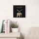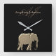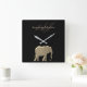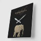 Horloge murale carrée à monogramme d'éléphant noir et or. Moderne, élégant, unique.