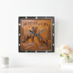 Horloge Carrée Engraved Wolf Pair Mountain Pine