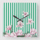 Horloge Carrée Été, printemps, impression de magnolia rayé vert