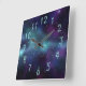 Horloge Carrée Étoiles dans l'espace bleu violet vert chiffres po