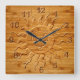 Horloge Carrée Face Soleil Souriant sculptée En Bois