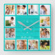 Famille 12 Photos Collage Bois Turquoise Carré Horloge murale