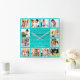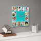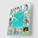 Horloge Carrée Famille 12 Photos Collage Bois Turquoise