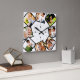 Horloge Carrée Family Photo Collage Rustic Farmhouse White