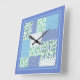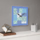 Horloge Carrée Faux Patchwork Snowdrops Blue Green et Polkas