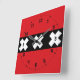 Horloge design avec drapeau d'Amsterdam, capitale de Pays-Bas, drapeau rouge et noir avec trois croix blanches de Saint Andrew au centre