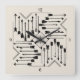 This Aztec-inspecred wall clock pattern has a chic Boho vibe with a geometric arrangement of arrows around a blazing sun shape. This modern square version has a black color scheme on the background color of your choice (the off-white shown here is optional). Search ID748 to see other color options and products with this pattern.