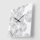 Horloge Carrée Fleurs abstraites de printemps noir et blanc