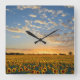 Horloge Carrée Fleurs de soleil au coucher du soleil
