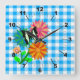 Horloge Carrée Fleurs et papillon en Vicky Bleu