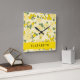 Horloge Carrée Fleurs Jaunes, Motif De Fleurs, Votre Nom