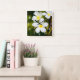 Horloge Carrée Fleurs tropicales frangipaniennes blanches