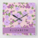 Horloge Carrée Fleurs Violettes, Motif De Fleurs, Votre Nom