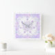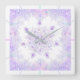 Horloge Carrée flocon de neige violet clair et coeur étincelant