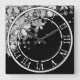 Horloge Carrée Floral fleurs foncées parties scintillant argent é