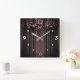 Horloge Carrée Floral, rayé, rétro