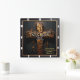 This incredibly moving and symbolic design captures the powerful theme of Forgiven Cross—redemption and sacrifice through Christ. The artwork, featured on a square wall clock, displays a dominant, rugged, textured cross appearing to be carved from ancient, gold-flecked earth against a dark background. The word "THE CROSS" is prominently displayed across the horizontal beam. The core message of Christian faith is clearly emphasized with the quote from Ephesians 1:7: "In Him we have redemption through His blood." The visual texture of the cross makes it feel timeless and profound. The highest quality print and artwork used on the surface is so exceptional it creates a stunningly realistic tactile illusion; you could easily mistake the textures for genuine embossed metal or heavy, worn leather. This piece is a spectacular dedication to faith and the love of God. this impressive, high-quality piece is a perfect gift for any devoted person, honoring their spiritual journey.