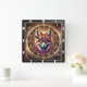 Horloge artistique avec renard entouré d'un modèle de mandala détaillé, mêlant éléments terrestres et cosmiques. Les couleurs vives et les élégants motifs créent une pièce unique et remarquable.
