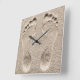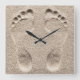 Il s'agit d'un funny beach theme wall decor clock with a pair of plume in the sand in a graphic design that looks like real sand from a distance and adds character and style to any room in your home. Designed as a novelty clock or timepiece that adds to a beach house.