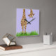 Ggirafe mignonne avec marguerite dans la bouche en herbe verte et motif pois pourpre et blanc.