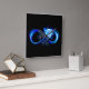 Luminous infinity symbol with glowing, beautiful, lushly blooming rose made of blue flames on black background.