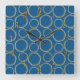 Horloge Carrée Gold Circles & Bright Blue Modern Trendy Chic
