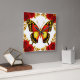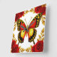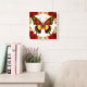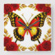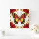 Horloge Carrée Golden Butterfly With Red Roses And Golden Leaves