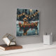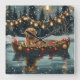Jetez un coup d'oeil à la magie de la saison des Fêtes avec cette illustration magnifiquement détaillée, montrant un chien fier assis dans un bateau à la décoration festive, glissant à travers un lac serein de Noël. Les lumières scintillantes des pins voisins se reflètent dans l'eau, projetant une lumière chaude et festive qui renforce l'ambiance cosy. Des ornements pendent des côtés du bateau, tandis que des lanternes brillantes éclairent le chemin, créant une scène qui capture l'essence véritable de la chaleur et de la joie de Noël. Cette oeuvre nostalgique apporte une touche de magie de vacances à tout espace, parfait pour ceux qui chérissent l'esprit de la saison.