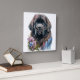 HORLOGE CARRÉE GRAND CHIEN DE TERRE-NEUVE NOIR EN COULEUR D'EAU