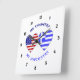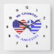 Horloge Carrée Grèce USA Drapeaux Coeurs Pays Ancêtre
