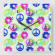 Horloge Carrée Groovy Hippie Peace Signs Flower Power Aqua