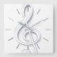 Horloge Carrée grosse clef de musique blanche