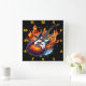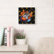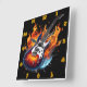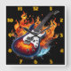 Horloge Carrée Guitare vibrante entourée de flammes au crépuscule