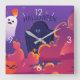 Horloge Carrée Halloween Lune Hantée Maison Carré Cloc