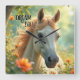 Horloge murale représentant une jolie peinture d'un cheval de rêve sur une scène estivale. Dans l'éditeur avancé vous pouvez trouver une indication d'heure (cliquez sur l'oeil à droite du calque à afficher) si vous le souhaitez.