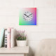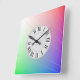 Le design se distingue par son élégance et son minimalisme, mettant en valeur des marqueurs d'heures numériques romains et des marqueurs de minutes dans un agencement élégant et moderne, face à des oeuvres d'art abstraites minimalistes avec un arrière - plan pastel aux couleurs arc-en-ciel. Pour des questions ou des demandes spéciales, contactez l'artiste à l'adresse wafadahdalcreates@gmail.com. © Wafa Y. Dahdal - Tous droits réservés. Art WD