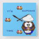 Il est temps de petit gâteau et ils sont les plus délicieux quand c'est cuisson de hibou de chef. Horloge murale drôle, à la mode et personnalisable.