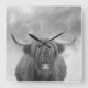 Horloge Carrée Highland Cow Scotland Clouds Black White
