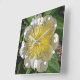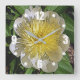 HORLOGE CARRÉE HORLOGE/ PEONY BLANC AVEC CENTRE JAUNE.