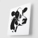 Horloge carrée montrée avec un arrière - plan blanc avec une copie mignonne de vache. Customisez cette horloge ou l'achetez comme est.